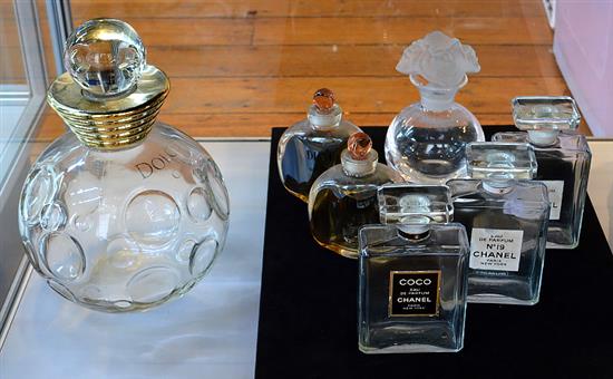 THREE PERFUME BOTTLES BY CHANEL TOGETHER WITH A LARGE BOTTLE BY CHRISTIAN DIOR AND TWO BOTTLES OF DUNE BY CHRISTIAN DIOR