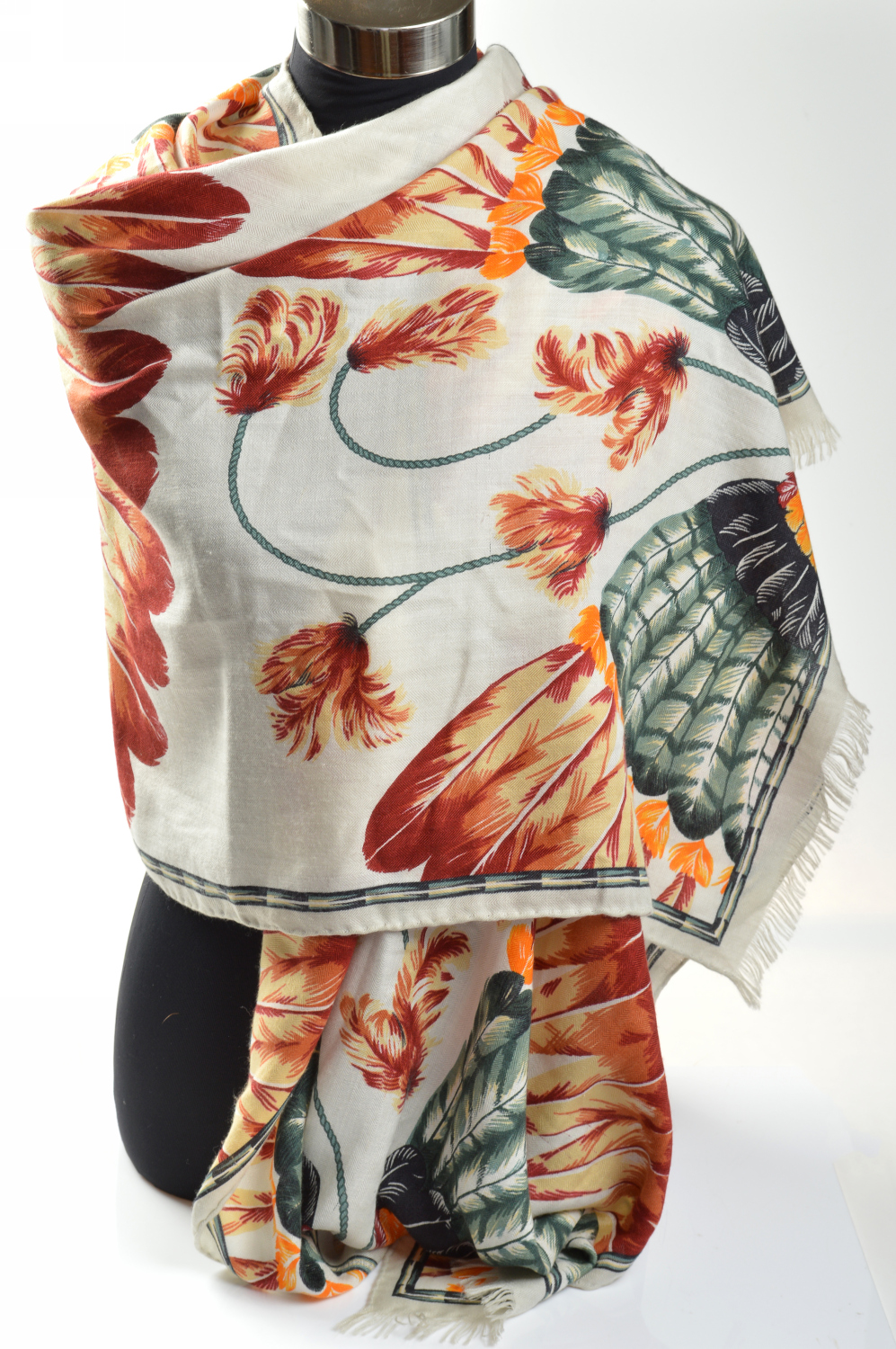 The 'Brazil' design cashmere and silk stole, in multi colours, on a cream background, with box, 62 x 170cm.
