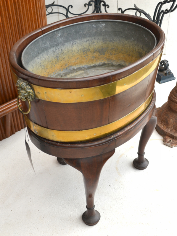 A 19th century brass bound mahogany cellarette on stand, with cabriole legs, 64cm x 64.5cm x 42cm