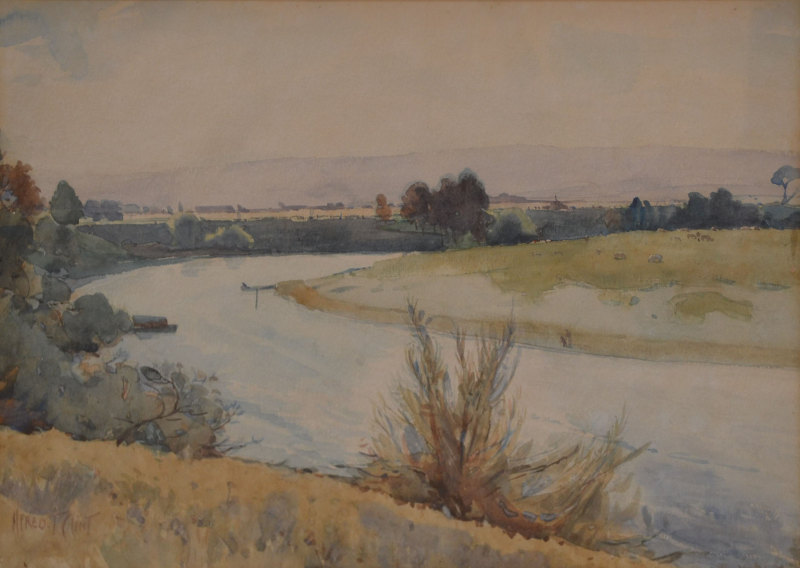 ALFRED T. CLINT, RIVER BEND, WATERCOLOUR, 26 X 36CM