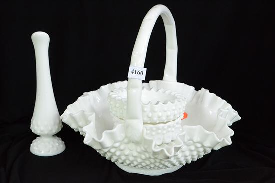 A COLLECTION OF MILK GLASS, INCL. BASKET, ASHTRAY, ETC