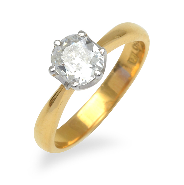 The oval old style vintage cut diamond of 0.80cts set in 18ct gold, ring size L.