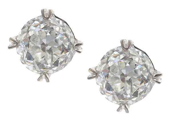Each set with an old style vintage cut diamond of 0.93cts, set in 18ct white gold.