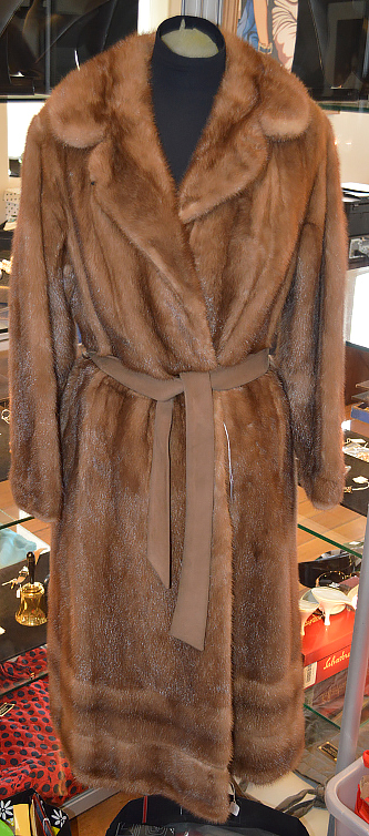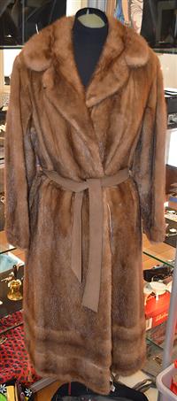 AN AUTUMN HAZE MINK COAT WITH SUEDE BELT, LABELLED LEVY FURS