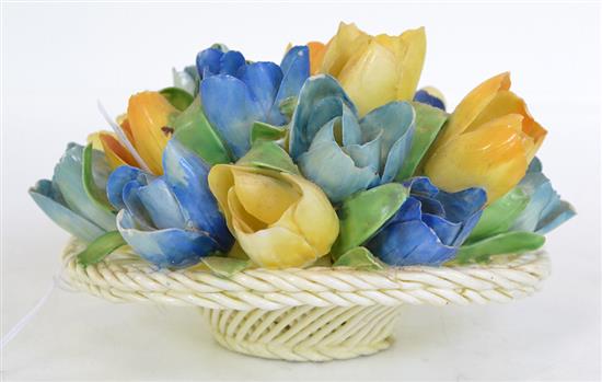 A ROYAL CROWN DERBY FLORAL GROUP IN PIERCED BASKET (FAULTS)