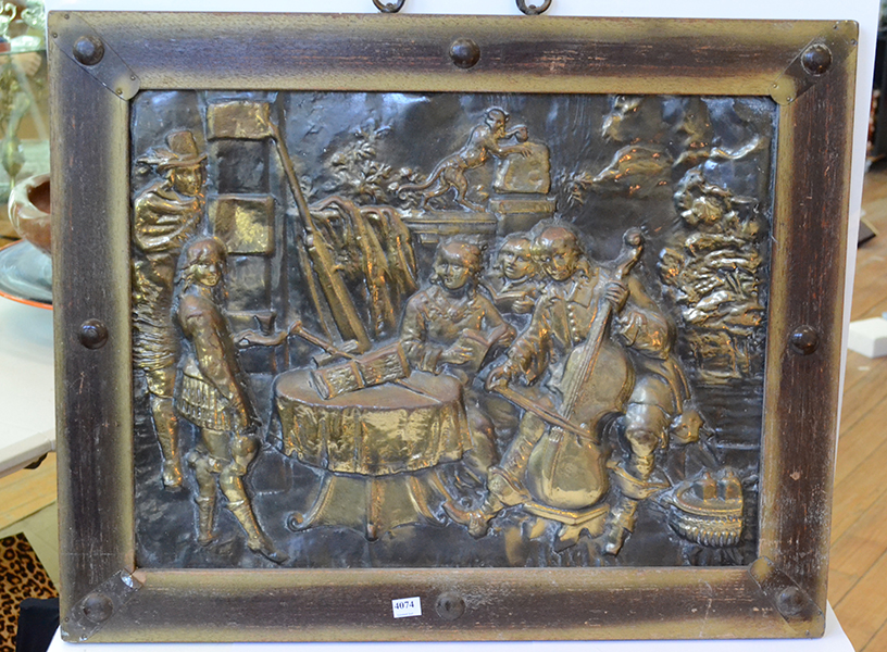 A BRASS REPOUSÉ FIRESCREEN WITH FRAME