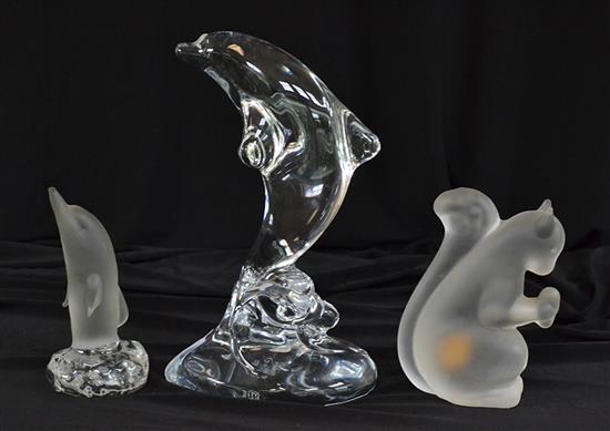 THREE ART GLASS ANIMALIA FIGURES, INCL. TWO SWEDISH ONE FRENCH