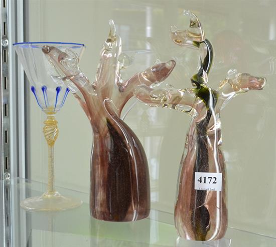 THREE MURANO GLASS PIECES, INCL. TWO GLASS SCULPTURES AND A VENETIAN GOBLET (LOSSES)
