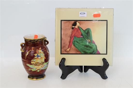 A CROWN DEVON LUSTRE VASE AND A R.C. GORMAN TILE