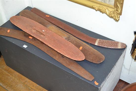 A COLLECTION OF AUSTRALIAN ABORIGINAL BOOMERANGS AND SHEILDS