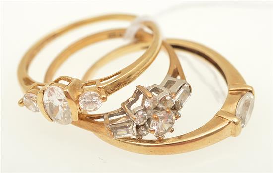 A COLLECTION OF THREE RINGS SET WITH CUBIC ZIRCONIA, IN 9CT GOLD