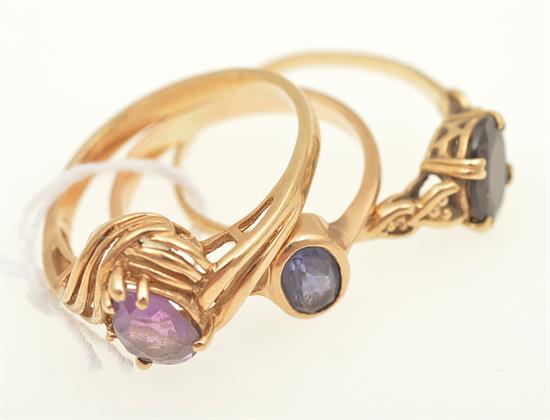 A SET OF THREE GEM SET DRESS RINGS, IN 9CT GOLD