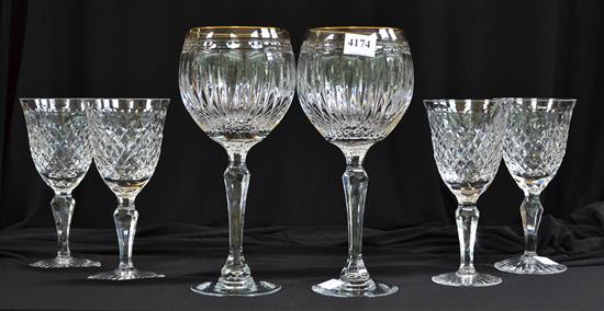 TWO MARQUIS FOR WATERFORD WINE GOBLETS & FOUR STUART RED WINE GLASSES (ONE WITH CHIP)