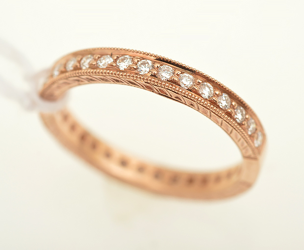A DIAMOND BAND WITH ENGRAVED SIDES, IN 18CT ROSE GOLD