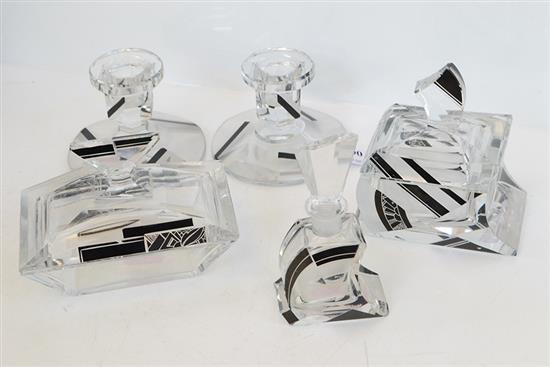 AN ART DECO FACETED GLASS DRESSING TABLE SET (MINOR CHIPS)