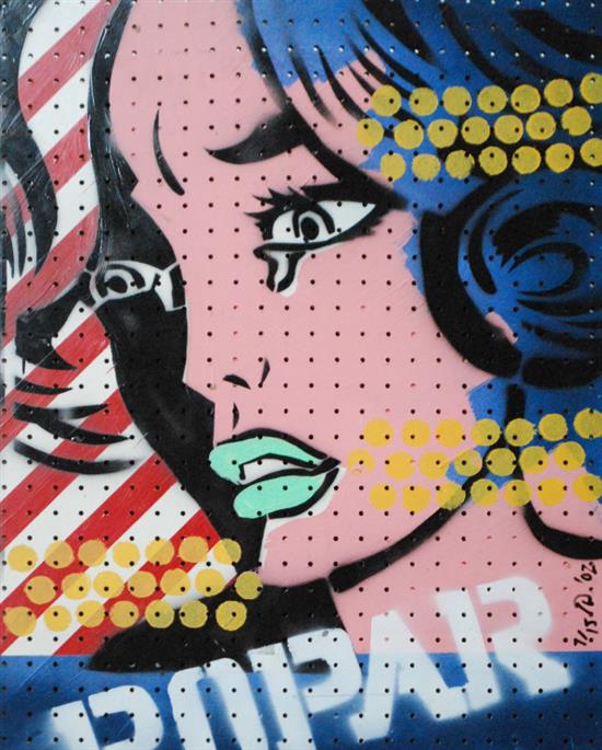 DENNIS ROPAR, CRYING GIRL, SYNTHETIC PAINT ON PEG BOARD, 76 X 61CM