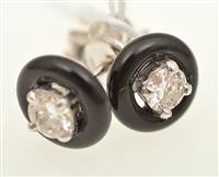 A PAIR OF DIAMOND AND ONYX STUD EARRINGS, APPROXIMATE TOTAL DIAMOND WEIGHT 0.40CTS, IN 18CT WHITE GOLD