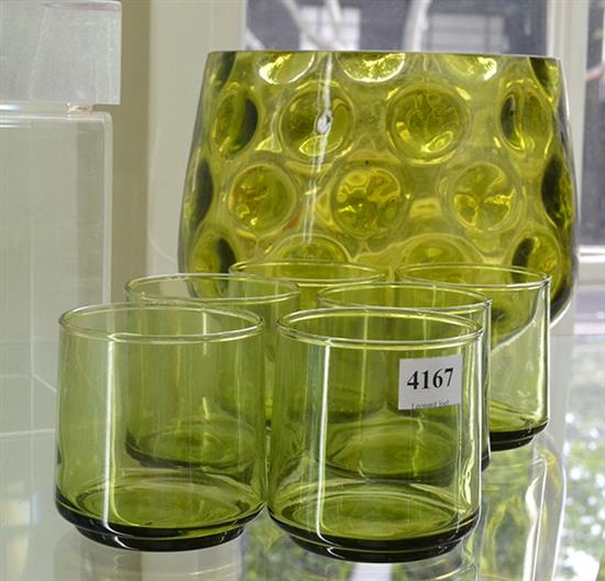 A CONTEMPORARY GREEN GLASS PUNCH SET
