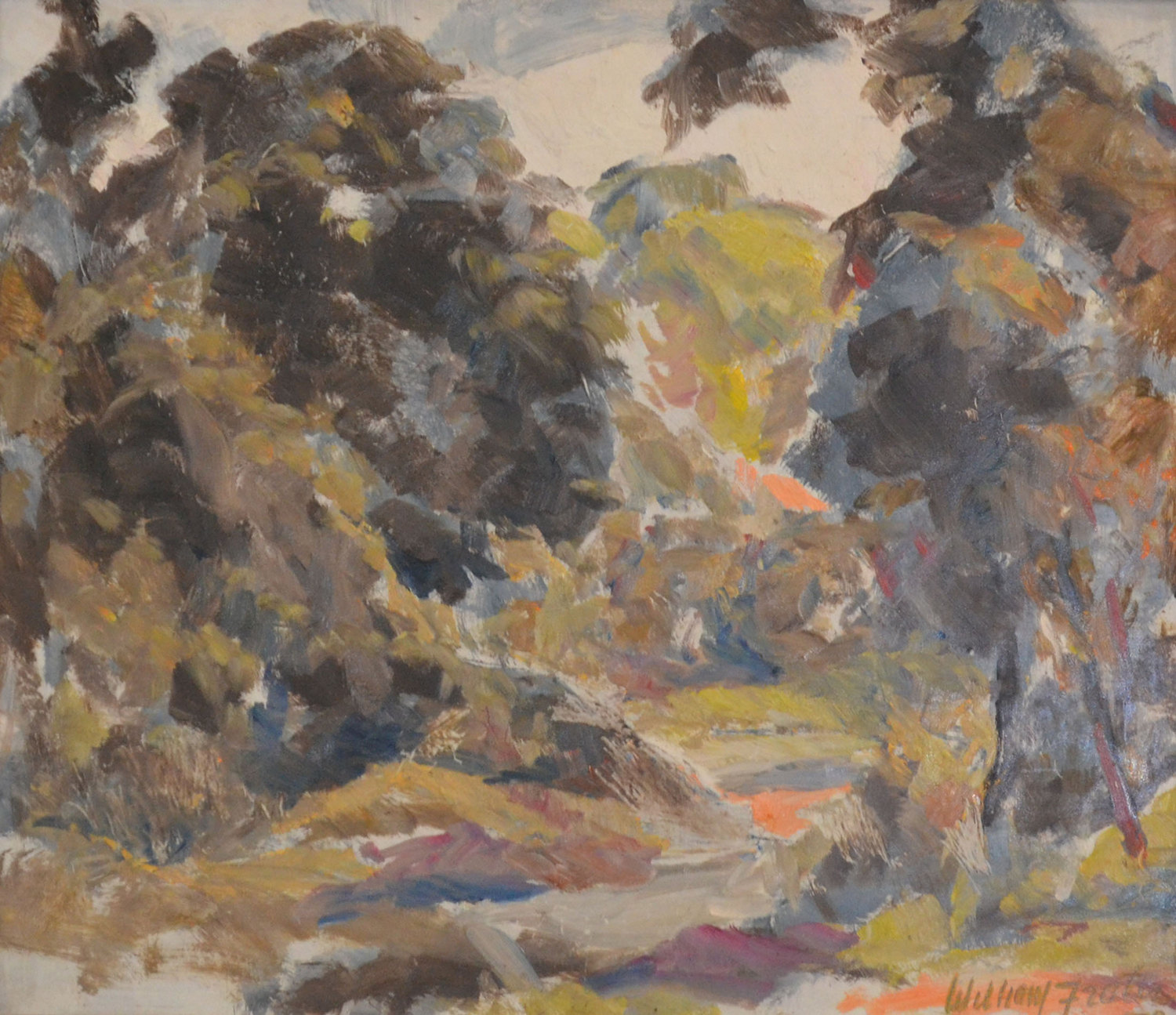 WILLIAM FRATER, LANDSCAPE 1973, OIL ON BOARD, 63 x 74CM