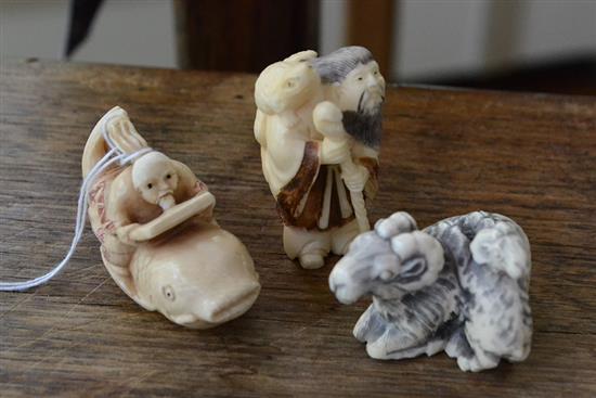 FOUR ASIAN IVORY CARVINGS, 19TH CENTURY AND LATER (SOME LOSSES)