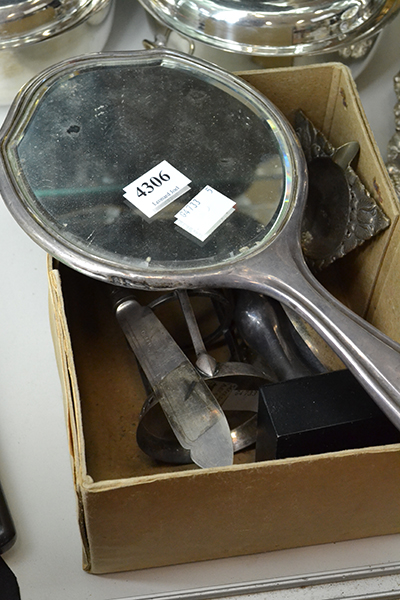 A COLLECTION OF STERLING SILVER, INCL. ASHTRAYS, BANGLE, FIGURINE, MIRROR, CUTLERY