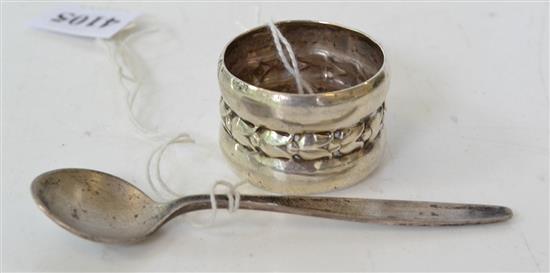 A GEORG JENSON SCARF HOLDER AND SALT SPOON