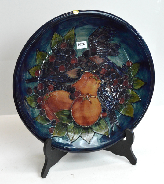 A LARGE MOORCROFT FINCHES BLUE CHARGER