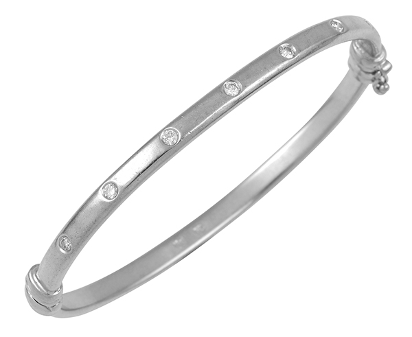 The oval hinged bangle set with seven round brilliant cut diamonds, mounted in 18ct white gold.