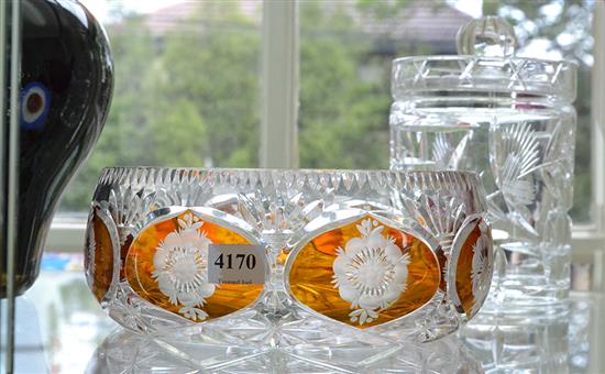 A BOHEMIAN FLASHED GLASS BOWL AND A CRYSTAL LIDDED JAR