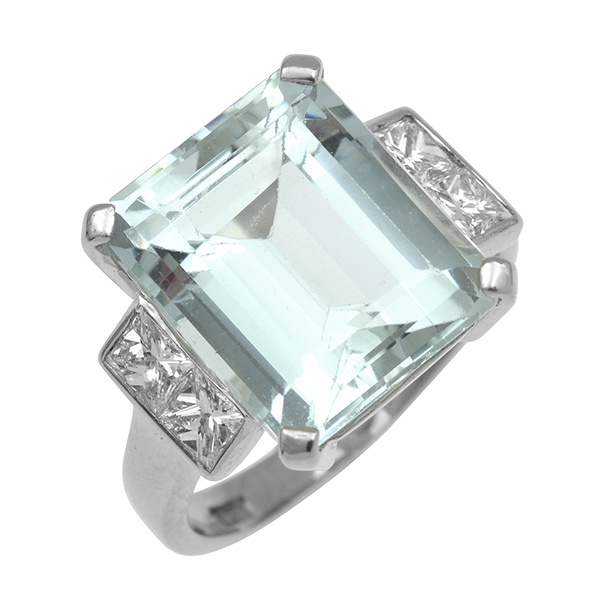 AN AQUAMARINE AND DIAMOND RING