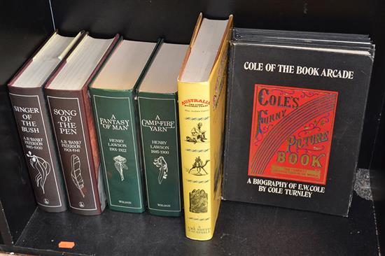 A SHELF OF MISCELLANEOUS BOOKS WITH AN AUSTRALIAN THEME, INCL. COLES FUNNY PICTURE BOOK AND AUSTRALIA THE FIRST ONE HUNDRED YEARS