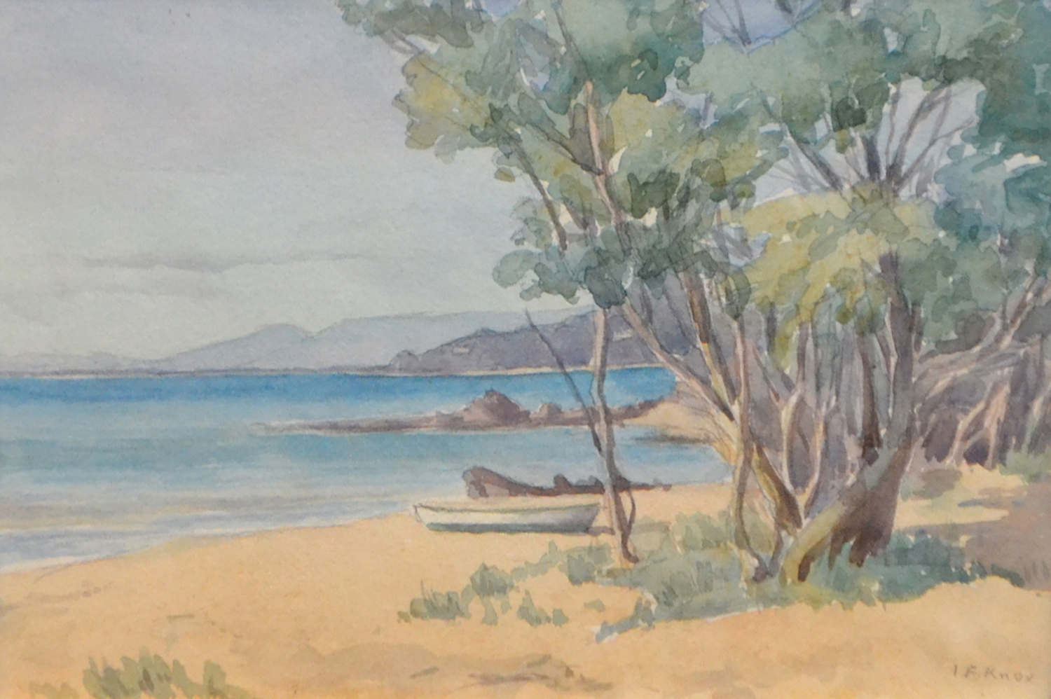 IDA F. KNOX, BEACH SCENE, WATERCOLOUR