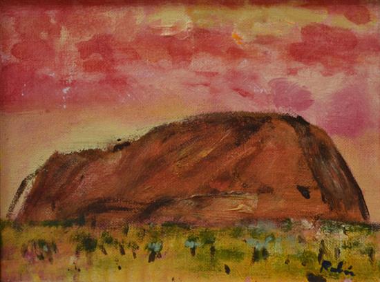 VICTOR RUBIN, ULURU, OIL ON CANVAS ON BOARD, 18 X 23CM