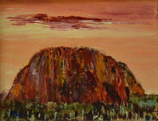 VICTOR RUBIN, ULURU, OIL ON CANVAS ON BOARD, 18 X 23CM
