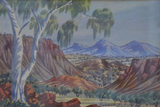 HENOCH RABERABA, CENTRAL AUSTRALIAN LANDSCAPE, WATERCOLOUR, 16.5 X 24CM