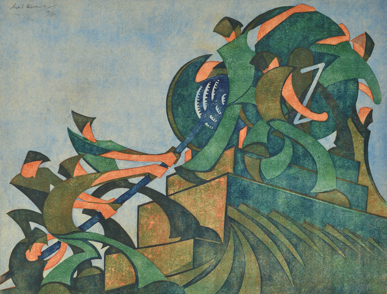 signed and editioned upper left: Sybil Andrews/10/50