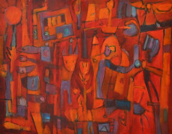 JOYCE ALLEN, COMPOSITION, OIL ON BOARD, 89 X 120CM