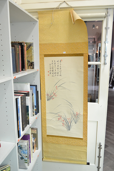 A HANDPAINTED CHINESE SCROLL, FLORAL SCENES DEPICTED (A/F)