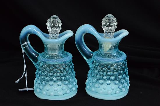 PAIR OF VASELINE HOBNAIL GLASS DECANTERS
