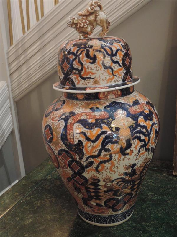 A SUBSTANTIAL LATE 19TH CENTURY JAPANESE IMARI GINGER JAR AND COVER, MEIJI PERIOD (1868-1912)