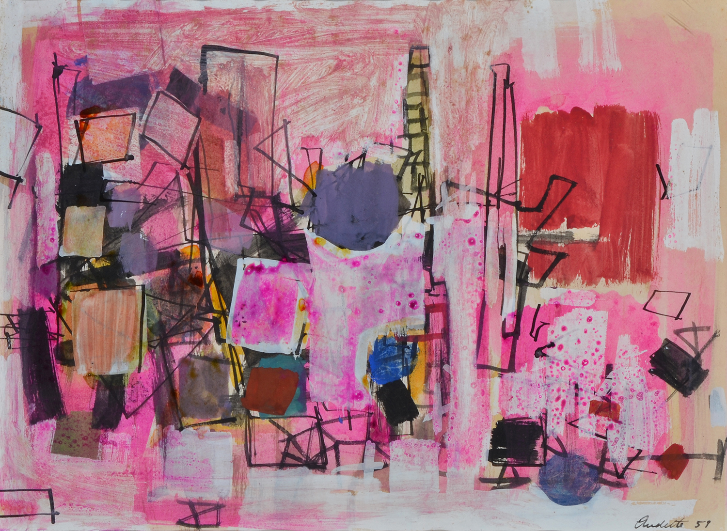 signed and dated lower right: Audette 58