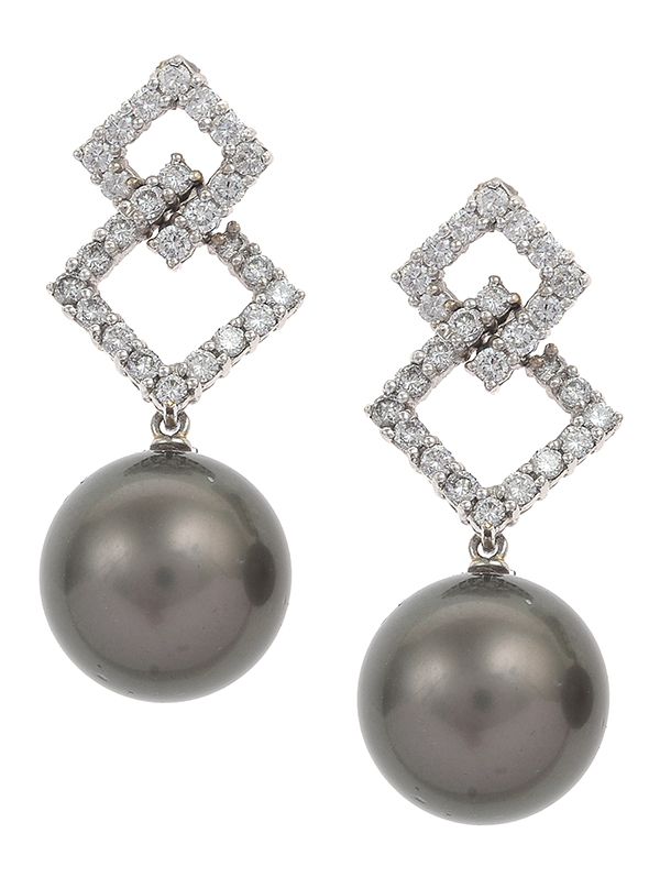 A PAIR OF TAHITIAN PEARL AND DIAMOND EARRINGS