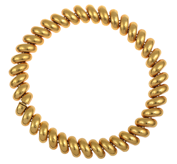 The stylised domed panels diagonally set in 18ct gold, total length 390mm.