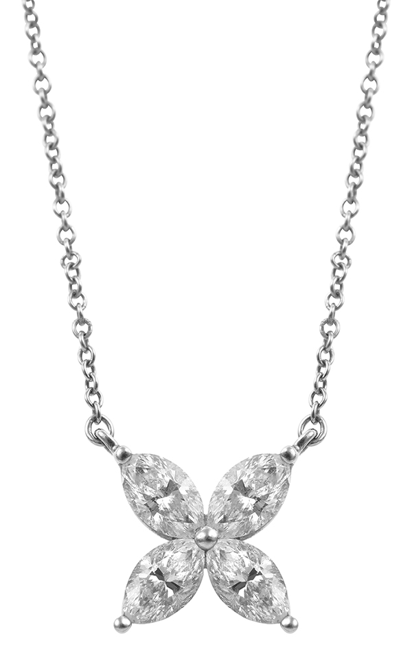Comprising four marquise cut diamonds totalling 0.81cts set in platinum, signed, total length 415mm.