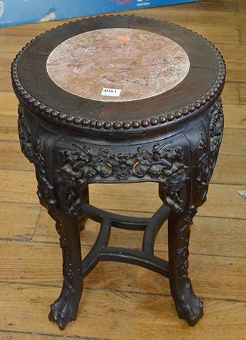 A CIRCULAR CHINESE MARBLE INSET PEDESTAL (FAULTS)