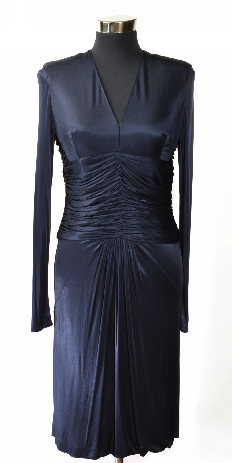 Styled in a navy viscose and silk blend, with v-neck, labelled size 44/10.