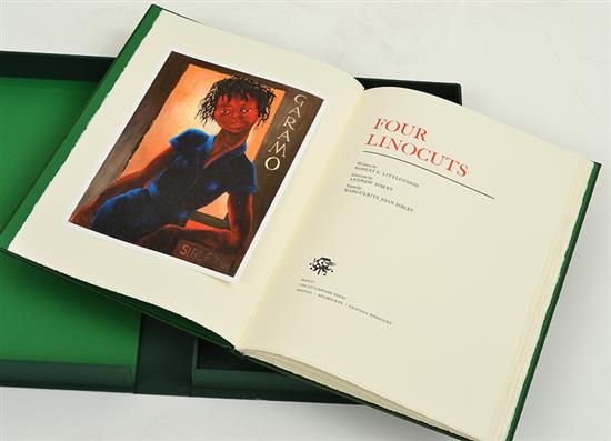 The Lytlewode Press, 2014, folio, limited to 100 copies, deluxe edition, gilt illustrated leather, four lincouts by the artist, each hand coloured and signed by the artist, housed in gilt lettered clam shell box, and containing the unbound sheets to the publication the Garden, limited to 10 copies with 17 original hand coloured linocuts, many signed