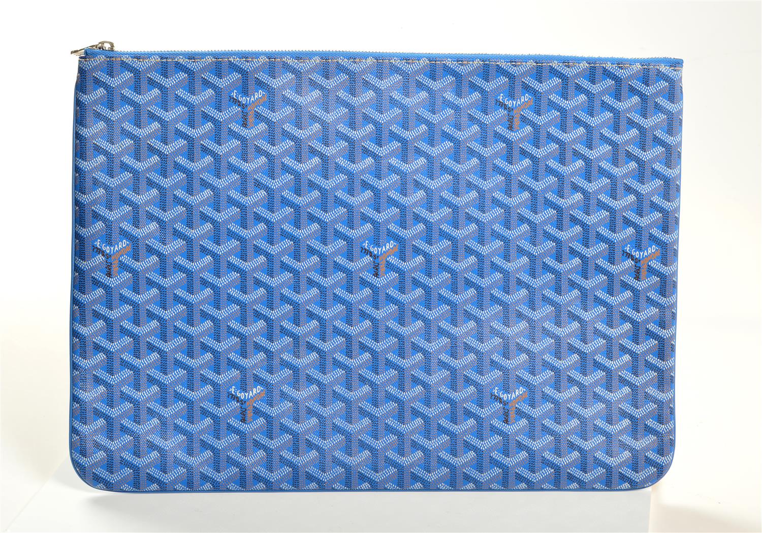Styled in signature blue canvas with vibrant orange interior, and silver metal hardware, 40.5 x 29cm.