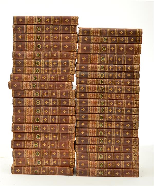 Translated from the French, with notes Historical & Critical, by Dr. Smollet and others, London, printed for Newby, R. Baldwin, W. Johnston, S. Crowder, T. Davies, J. Coote, G. Kearsley and B. Collins, at Salisbury, 1761-1772, full calf binding, boards with gilt rule (slightly rubbed), spine with raised bands