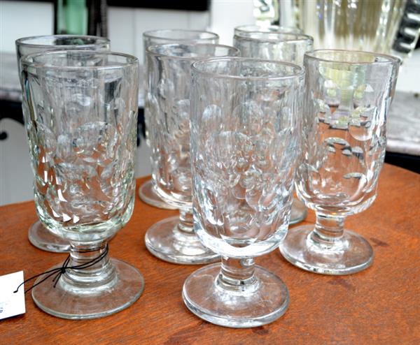 A collection of eight faceted glass goblets, (one with a chip to the rim)